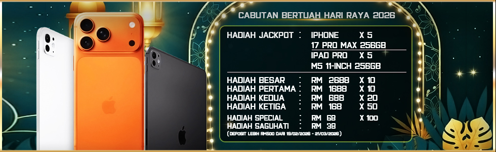 - Cabutan Bertuah Hari Raya ini terbuka kepada SEMUA Ahli Mudahbet yang telah deposit dan dimainkan pada 21hb Februari 2026 Hingga 21hb March 2026.